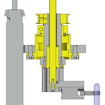將法蘭型螺帽安裝在中空的旋轉(zhuǎn)軸上,通過帶輪傳遞旋轉(zhuǎn)動(dòng)力