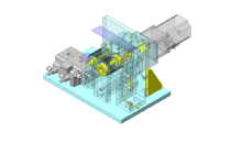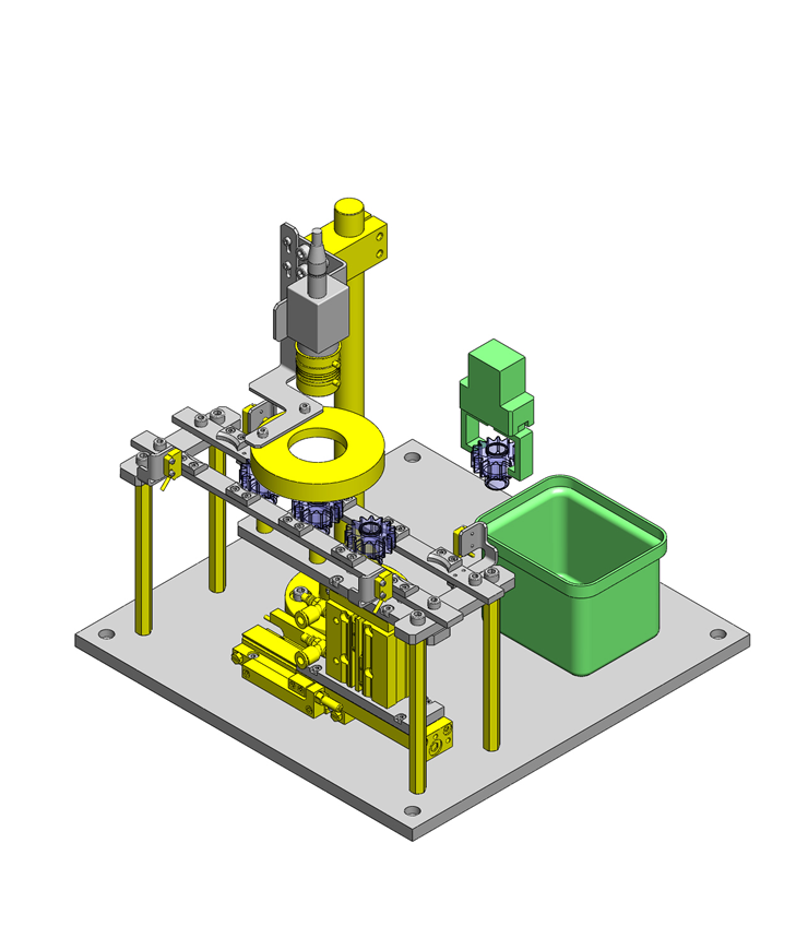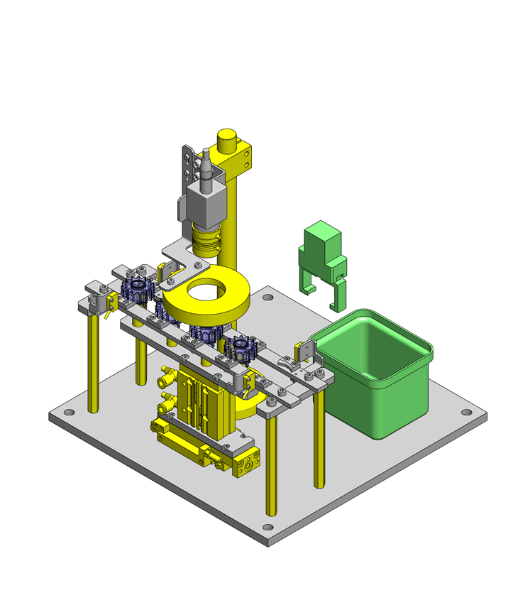 為了避免工件投放、取出用的夾具與工件導(dǎo)塊干涉,工件臺上的工件定位采用雙向定位。這樣,夾具爪可在工件中心附近進行抓取。
