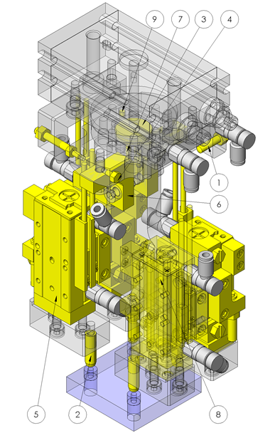 90°位置相對(duì)應(yīng)的多個(gè)零件壓入頭