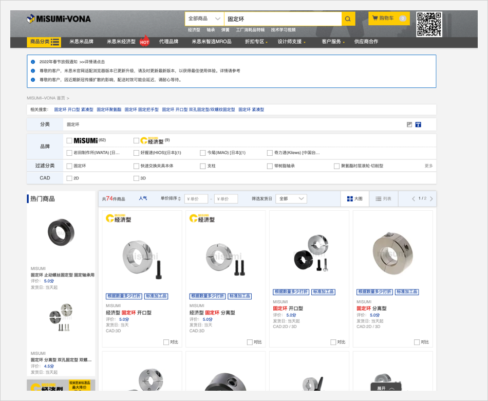 在搜索框中输入型号的一部分,下方将会显示相关备选型号;点击备选型号,将打开相对应的商品页。