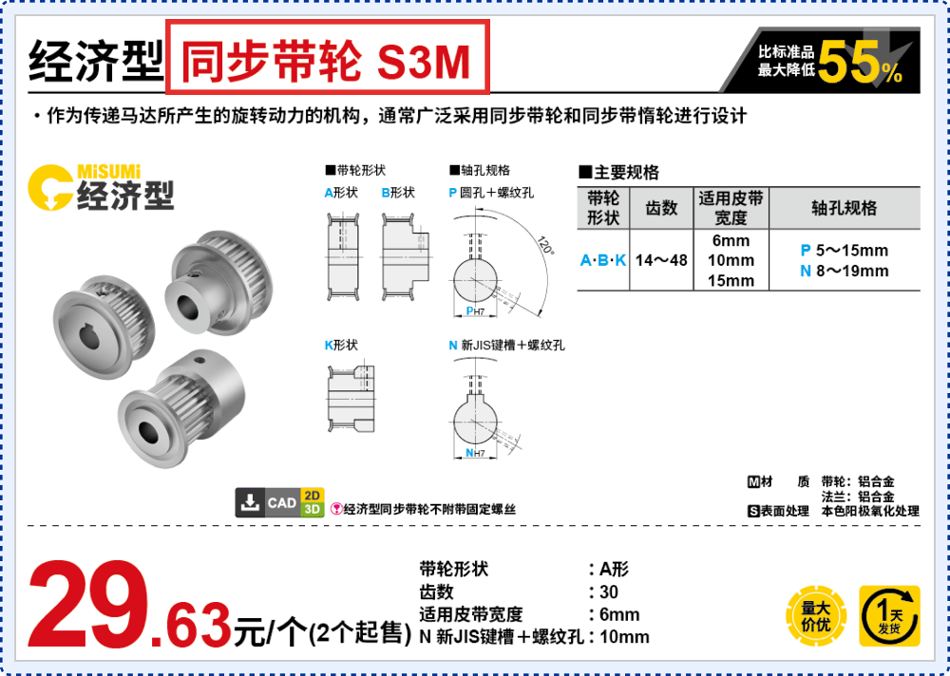 1.在經(jīng)濟型新產(chǎn)品特輯目錄的索引中查找同步帶輪所在頁碼。