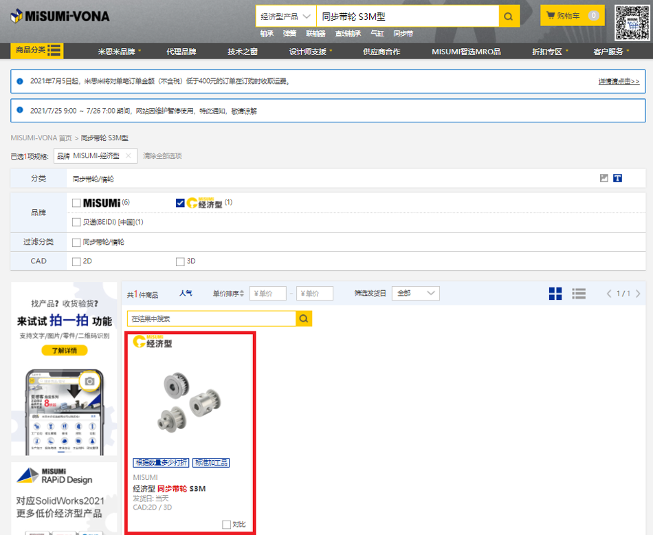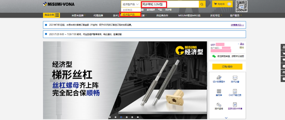 4.在米思米網(wǎng)站首頁搜索欄選擇“經(jīng)濟型產(chǎn)品”并輸入需要檢索的產(chǎn)品名稱。