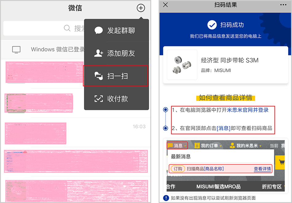 5.掃碼成功后按步驟(紅框)在電腦端查看[消息]。