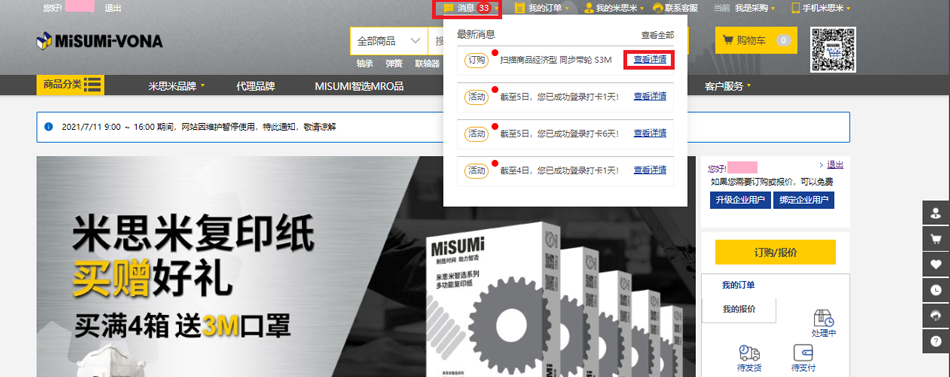 6.點擊官網(wǎng)頂部【消息】下的【查看詳情】。