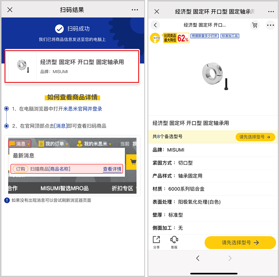 注意事項:您也可以直接在掃描成功頁面直接點擊產(chǎn)品名稱,即可在手機端查看產(chǎn)品,具體圖例如下。