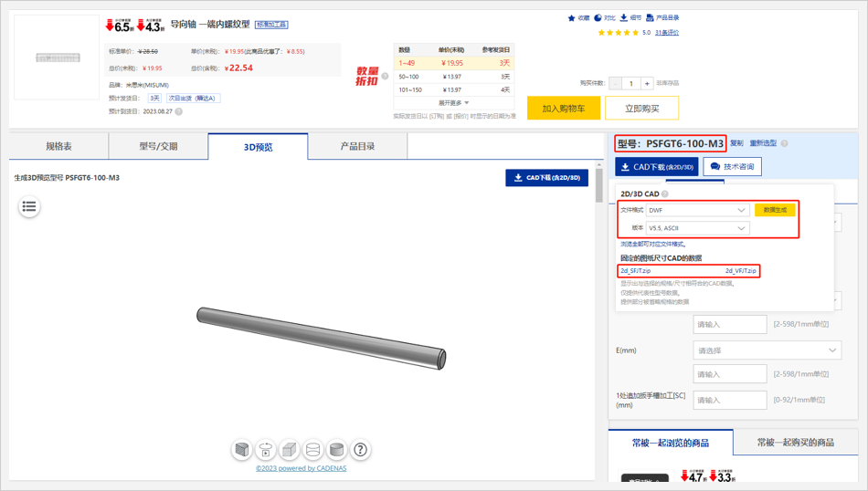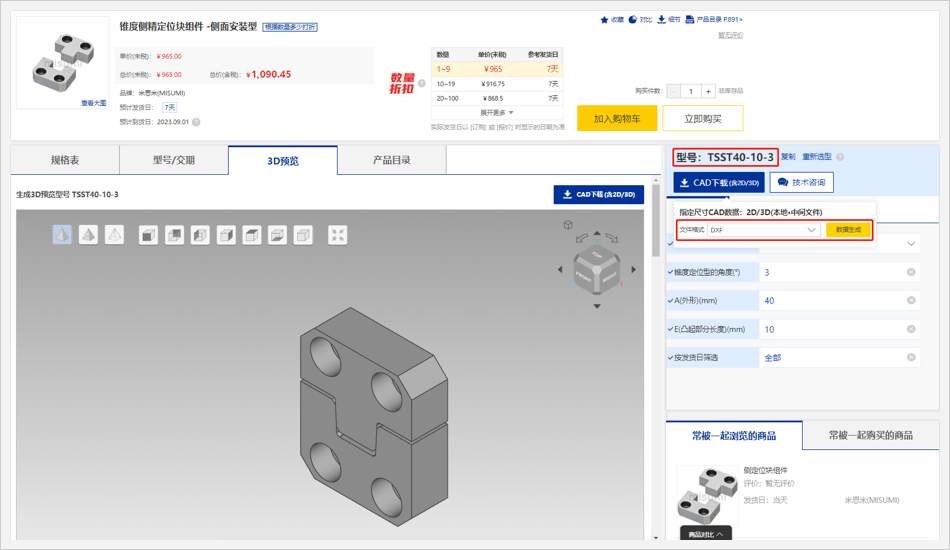 01在商品詳情頁中選定型號后,點擊【CAD下載】按鈕,彈出【數(shù)據(jù)生成】確認框;