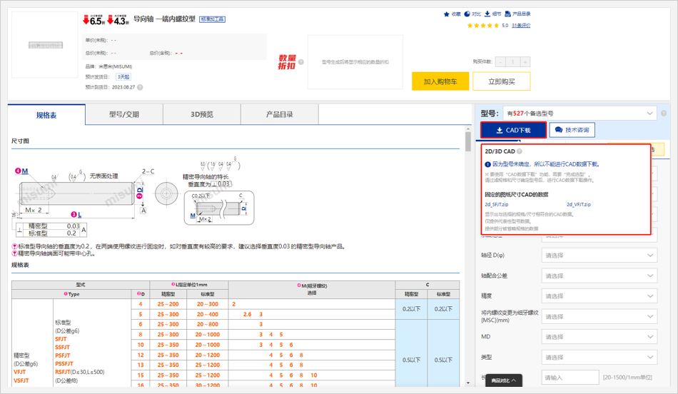 ②部分商品選型后,點擊【CAD下載】按鈕,彈出內(nèi)容顯示如下圖所示