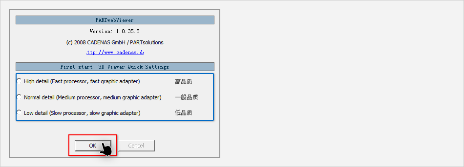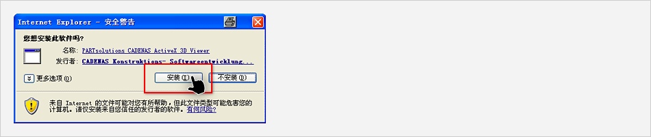 選擇零件時為了顯示預覽,需要安裝ActiveX控件。