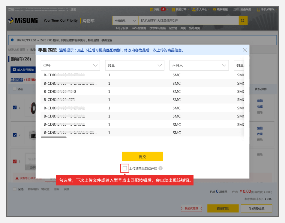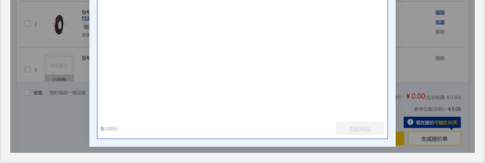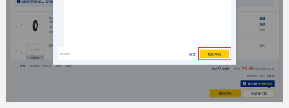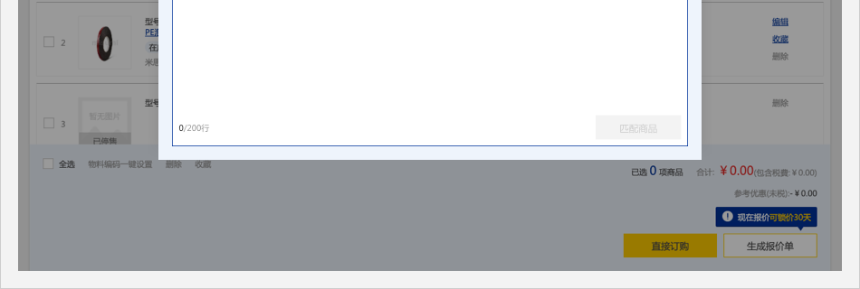畫面跳轉(zhuǎn)至購物車頁面,并自動彈出【批量下單/詢價】彈窗。