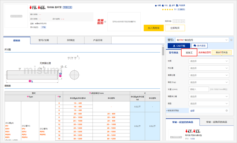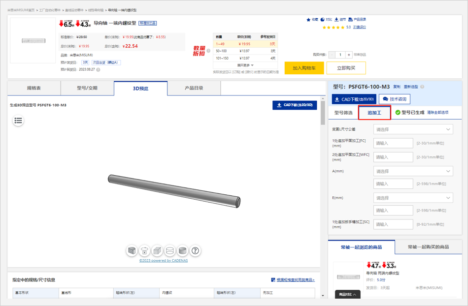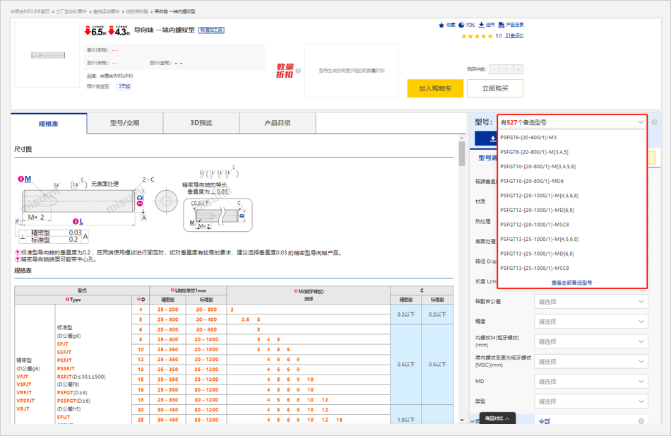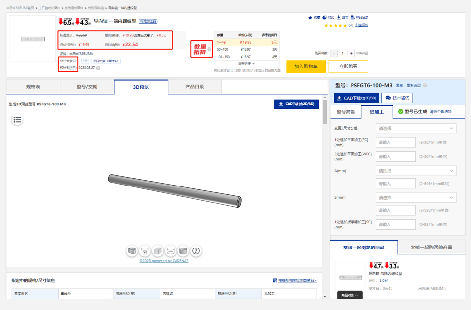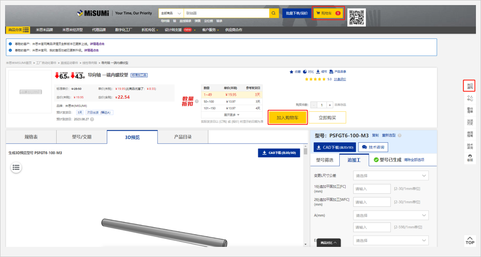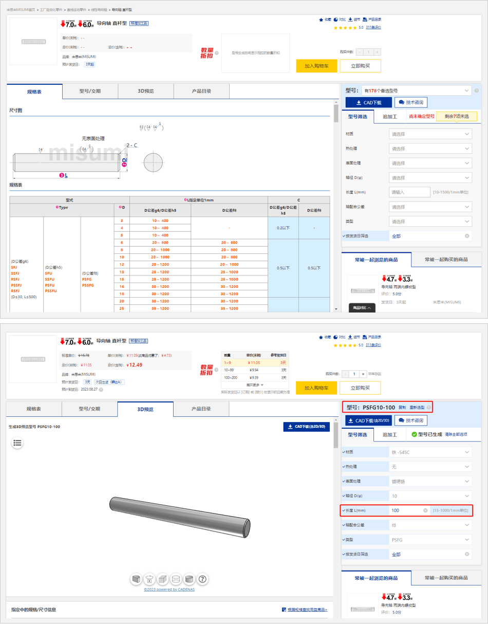 ※圖例中所顯示的價格信息均為樣例,實際商品價格請在米思米網(wǎng)站上再次確認(rèn)。