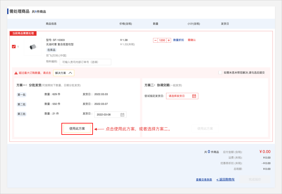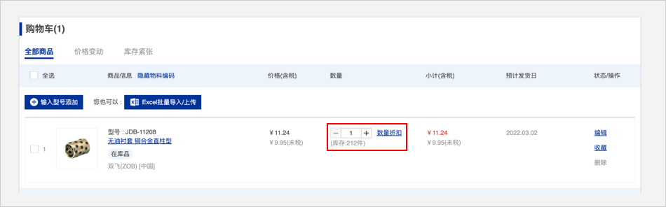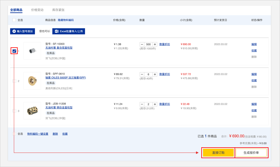 點擊「直接訂購」,可直接查看商品價格和交期,確認(rèn)沒有問題后可訂購商品。