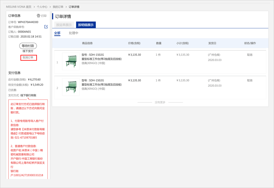 商品取消后,頁面顯示該商品狀態(tài)標(biāo)簽【已取消】。