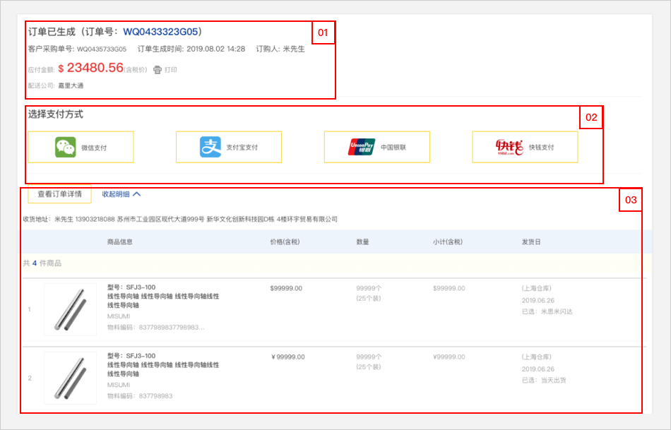 2.選擇支付方式:選擇適合您的支付方式,進(jìn)行支付并完成訂單,后續(xù)米思米將為您處理您的訂單。