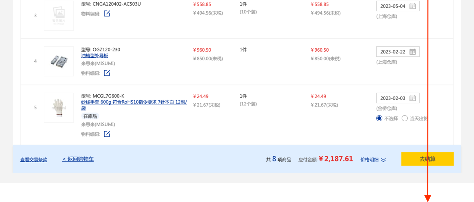 ※图例中所显示的价格信息均为样例,实际商品价格请在米思米网站再次确认