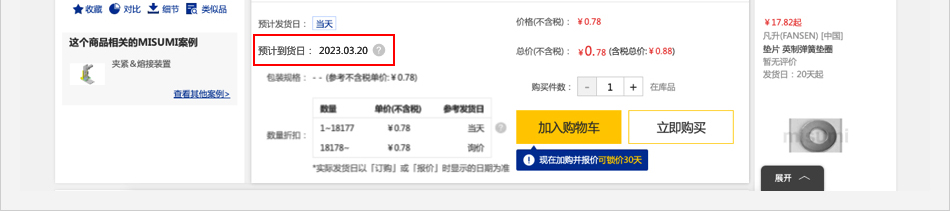 進(jìn)入【商品詳情】頁(yè)面,在型號(hào)確定后,可以查看該商品的預(yù)計(jì)到貨日。