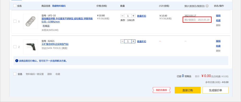 在【購(gòu)物車】頁(yè)面,即可直接查看對(duì)應(yīng)商品的預(yù)計(jì)到貨日。