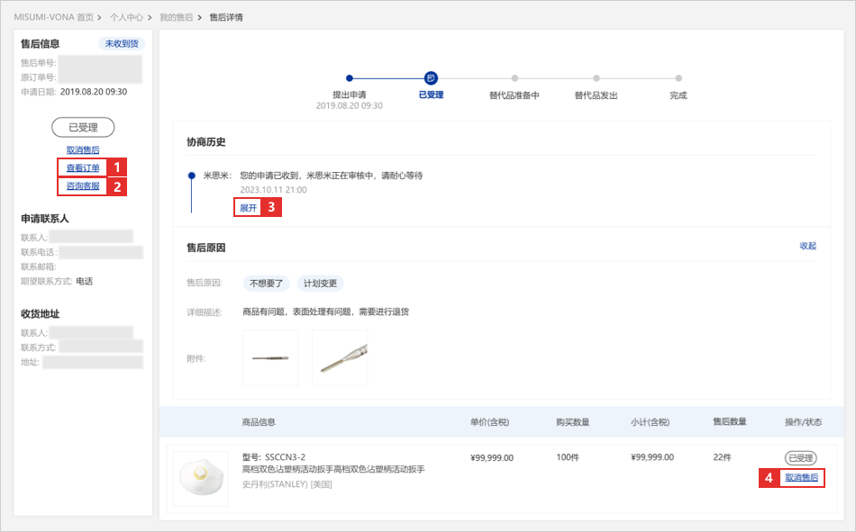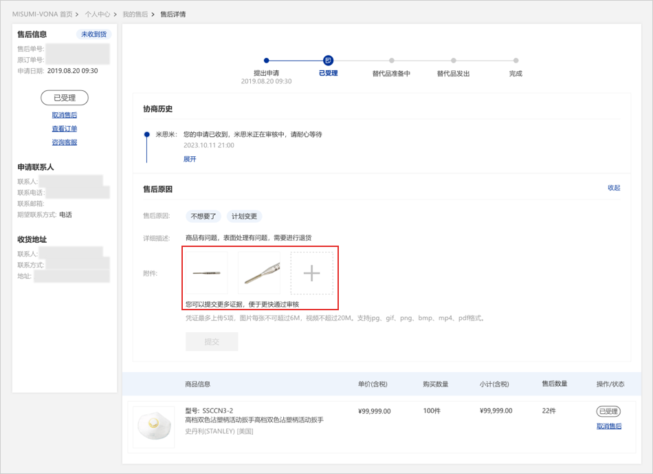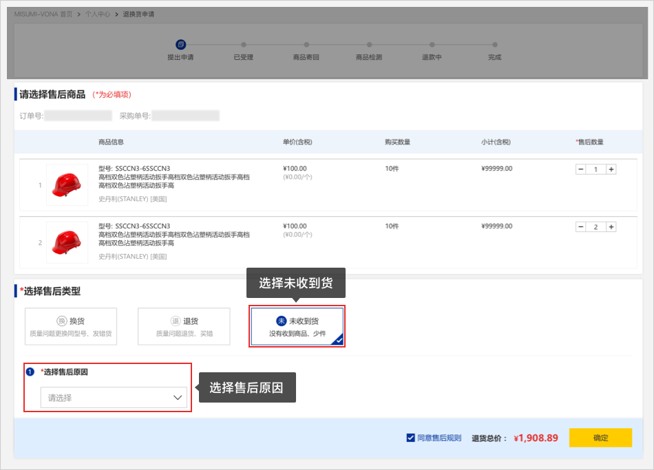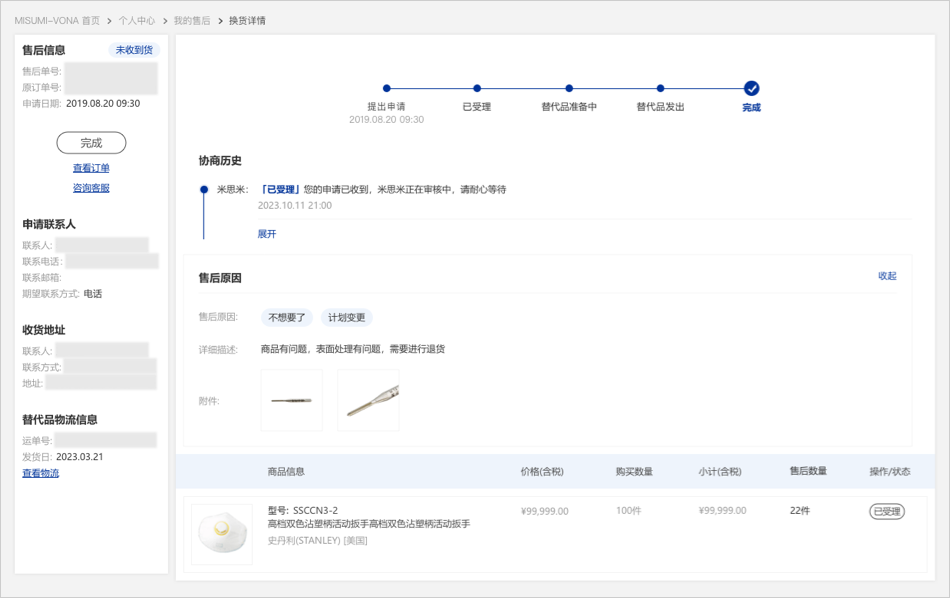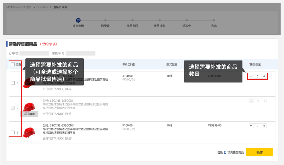 07未收到貨申請通過后,米思米將為您安排替代品并寄送給您