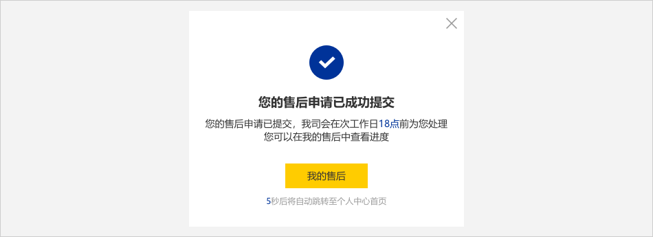 05點擊【確認(rèn)】按鈕后,顯示【您的售后申請已成功提交】彈窗,即已完成未收到貨申請的提交。