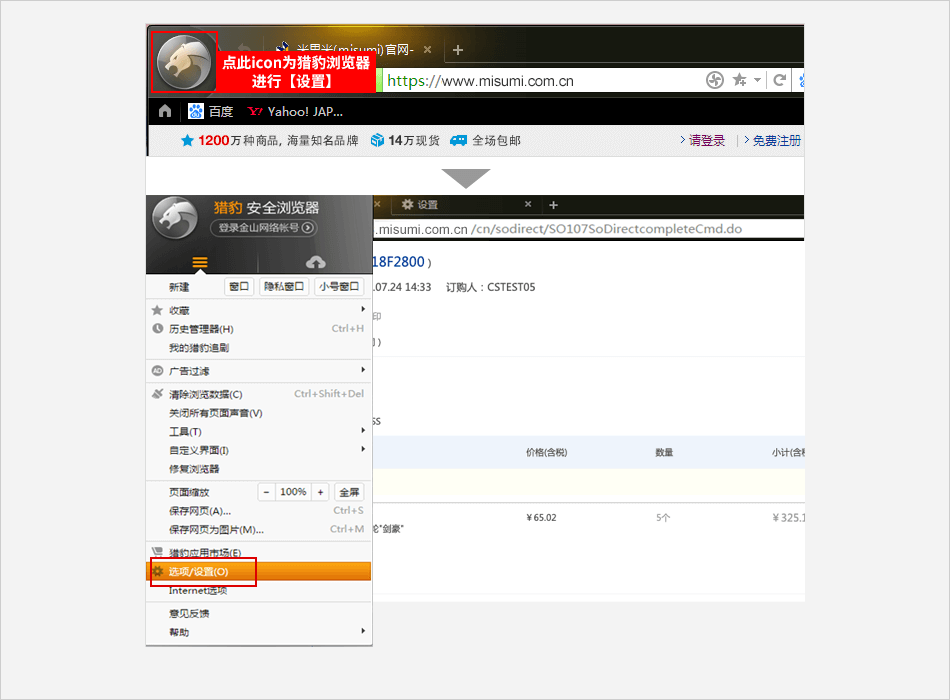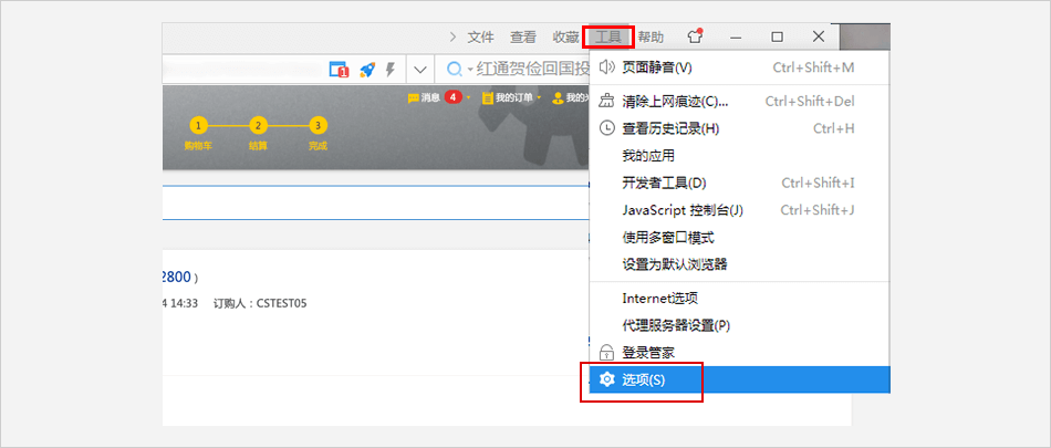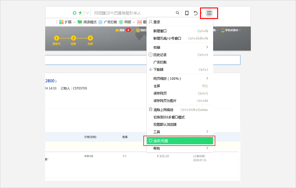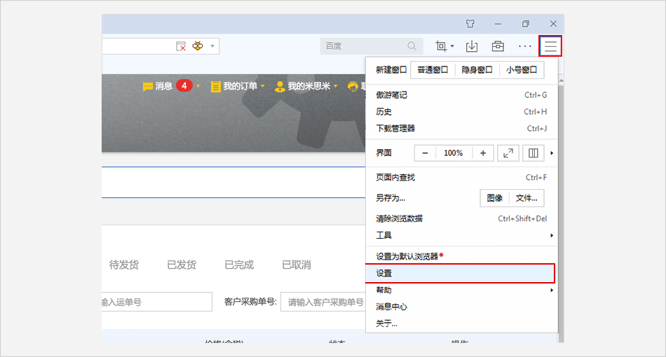 在瀏覽器菜單頁面中進(jìn)行設(shè)置