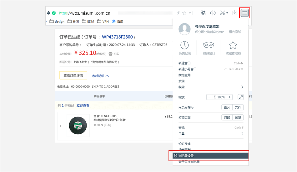 單擊瀏覽器右上角的設(shè)置標(biāo)志 ? 點(diǎn)擊 【瀏覽器設(shè)置】 選項(xiàng)。