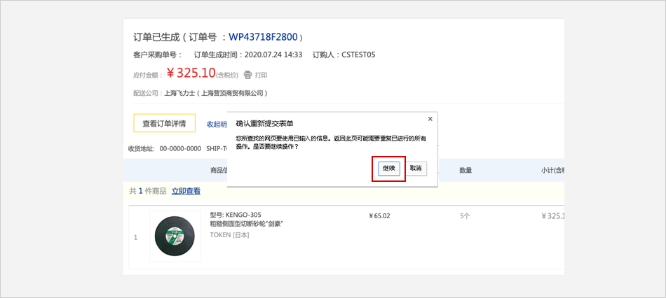 點(diǎn)擊【繼續(xù)】按鈕 ? 即可進(jìn)行付款。