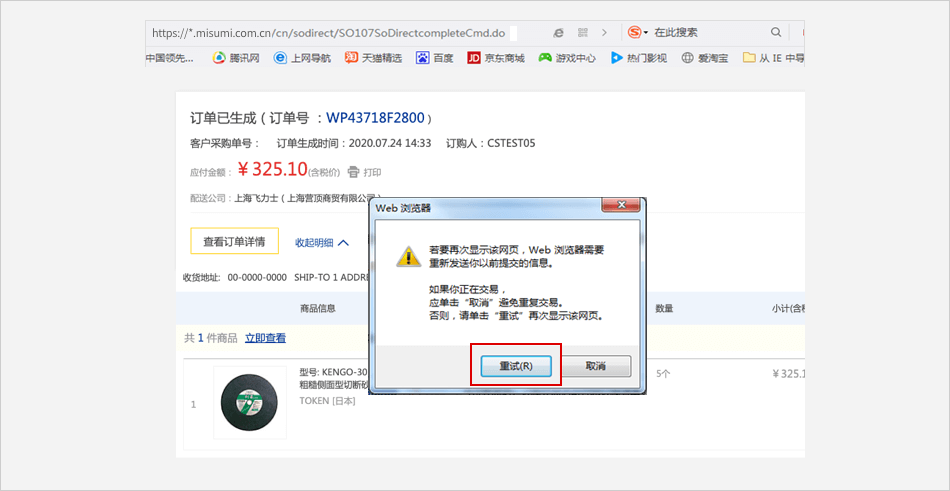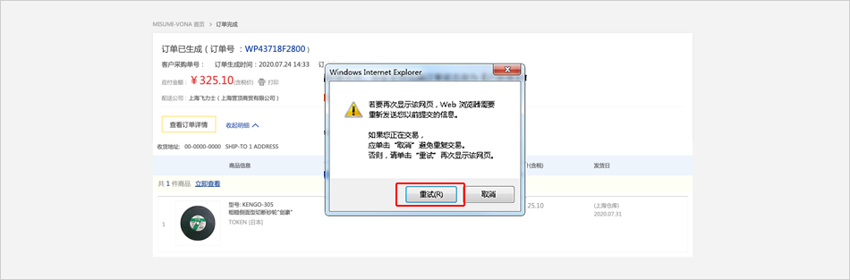 點(diǎn)擊【重試】后即可進(jìn)行付款。