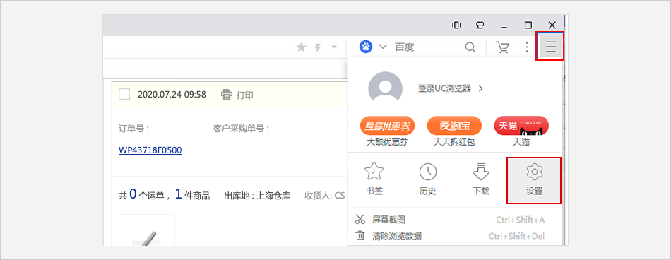 單擊瀏覽器右上角的菜單標(biāo)志 ? 選擇 【設(shè)置】。