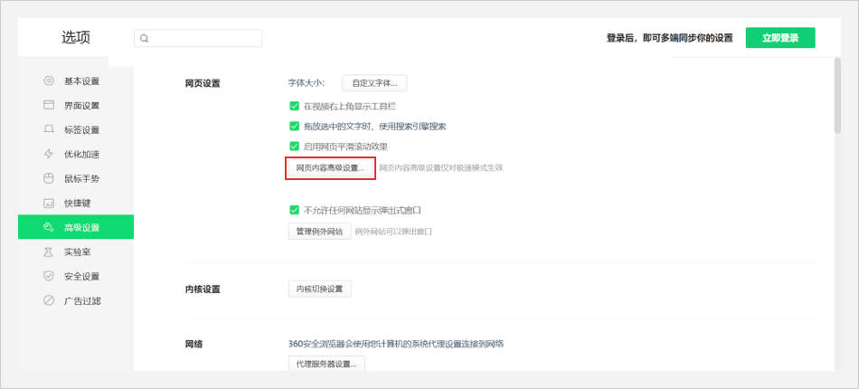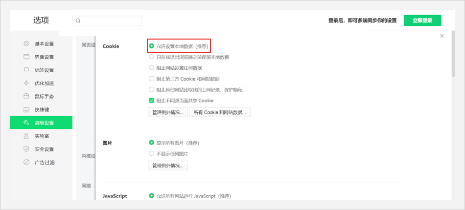 設置——高級設置——網頁內容高級設置——點選【允許設置本地數據】