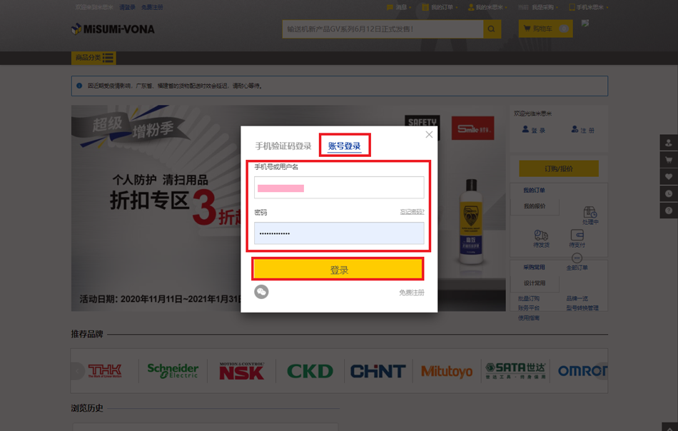 1.點(diǎn)擊米思米首頁(yè)【請(qǐng)登錄】或【登錄】。