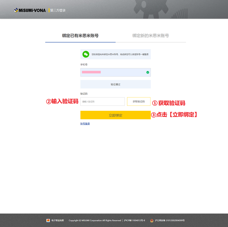 驗(yàn)證通過(guò)后獲取驗(yàn)證碼,點(diǎn)擊【立即綁定】,即可成功登錄。
