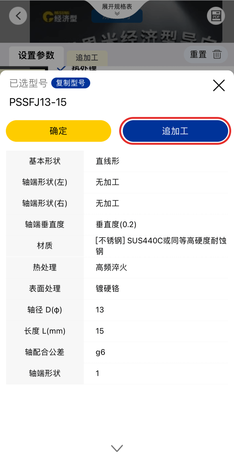 左側(cè)及頭部有【追加工】選項(xiàng)框,根據(jù)商品屬性追加參數(shù)。