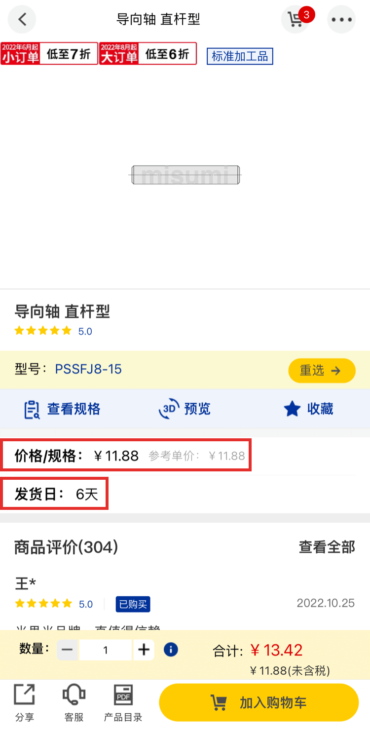 ※「確認(rèn)價格/發(fā)貨日/數(shù)量折扣」在型號確定后顯示出來。