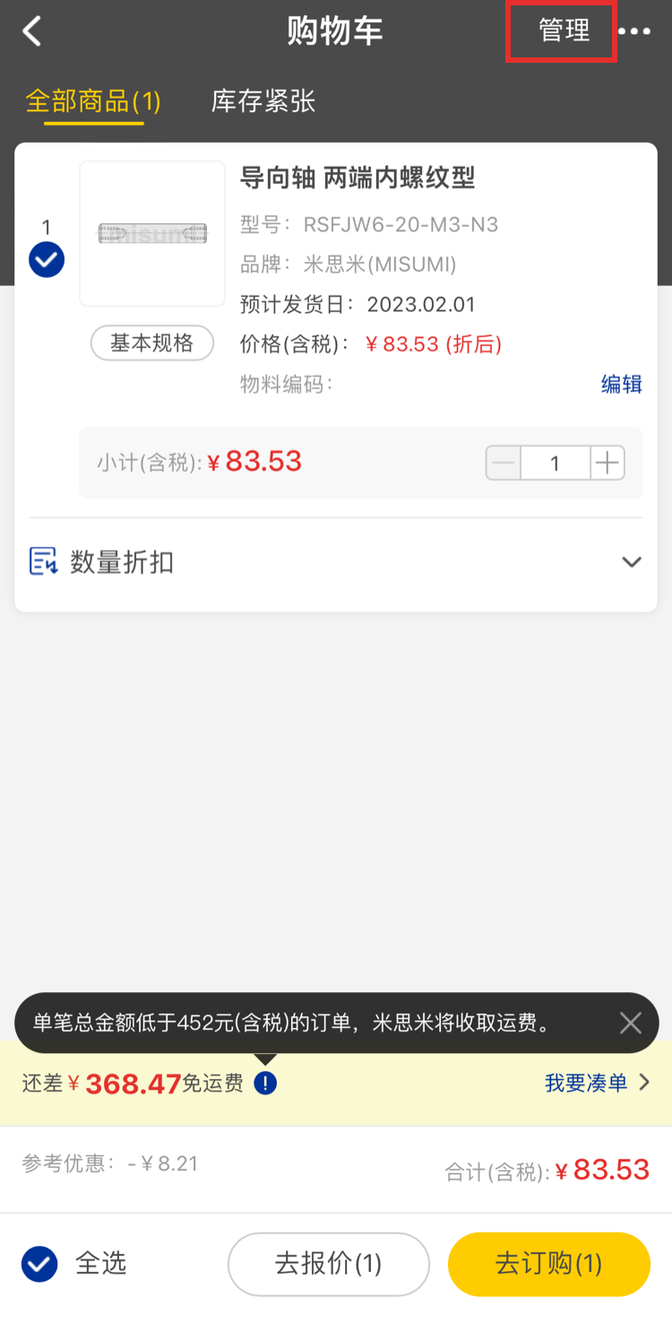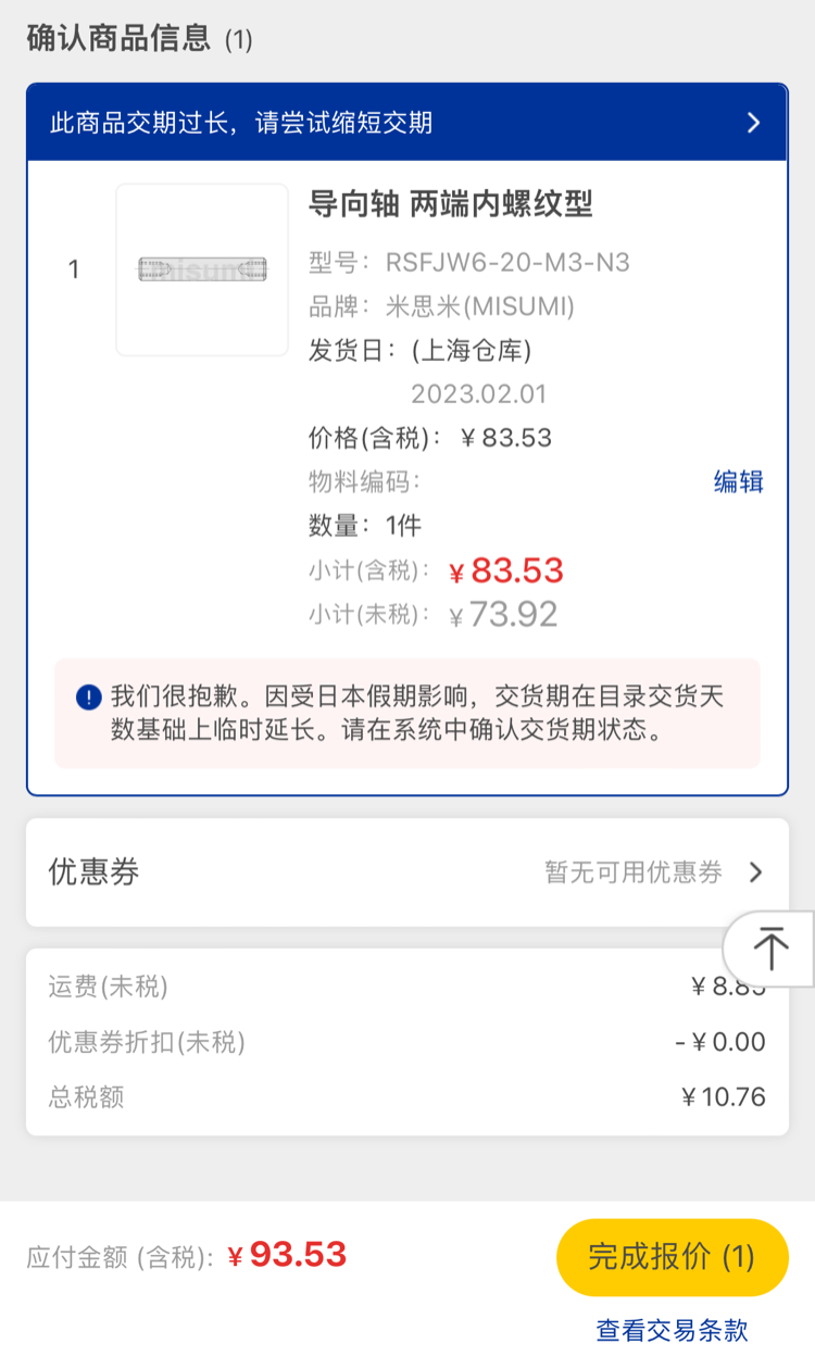 點擊「直接訂購」,可直接查看商品價格和交期,確認沒有問題后可訂購商品。