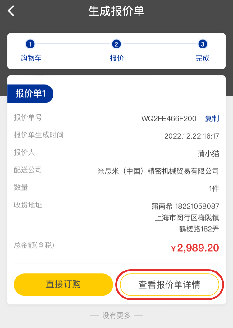 點擊「生成報價單」,可對選中的商品進行報價,確認價格和交期后再訂購。
