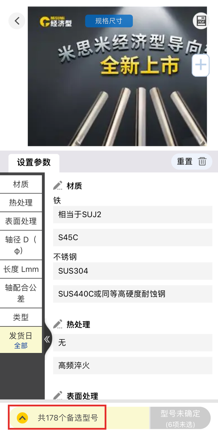※圖例中所顯示的價格均為樣例,實際商品價格請在米思米網(wǎng)站上再次確認。