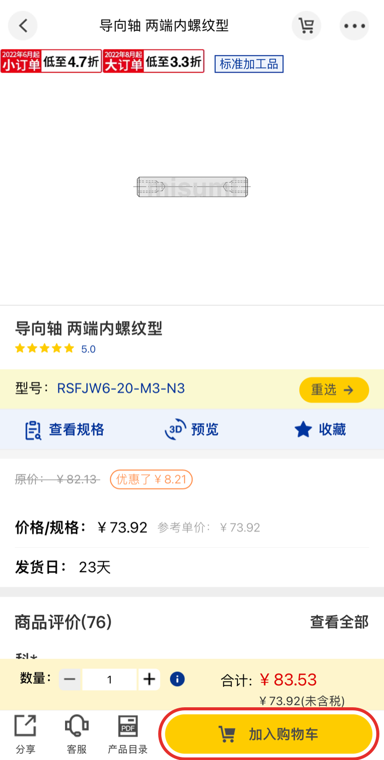 ※圖例中所顯示的價格信息均為樣例,實際商品價格請在米思米網(wǎng)站上再次確認。