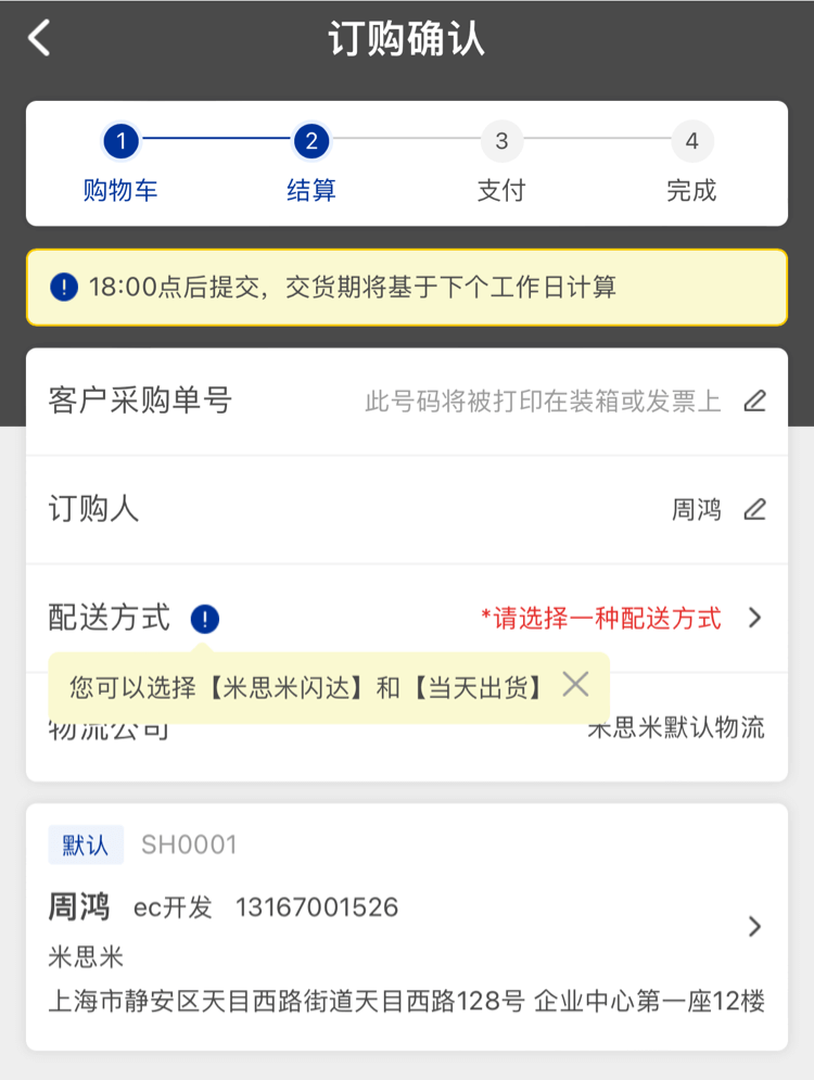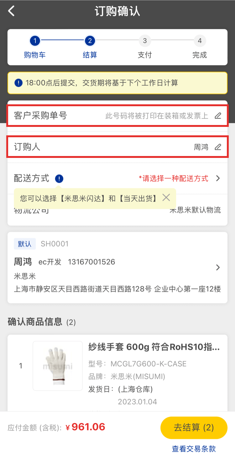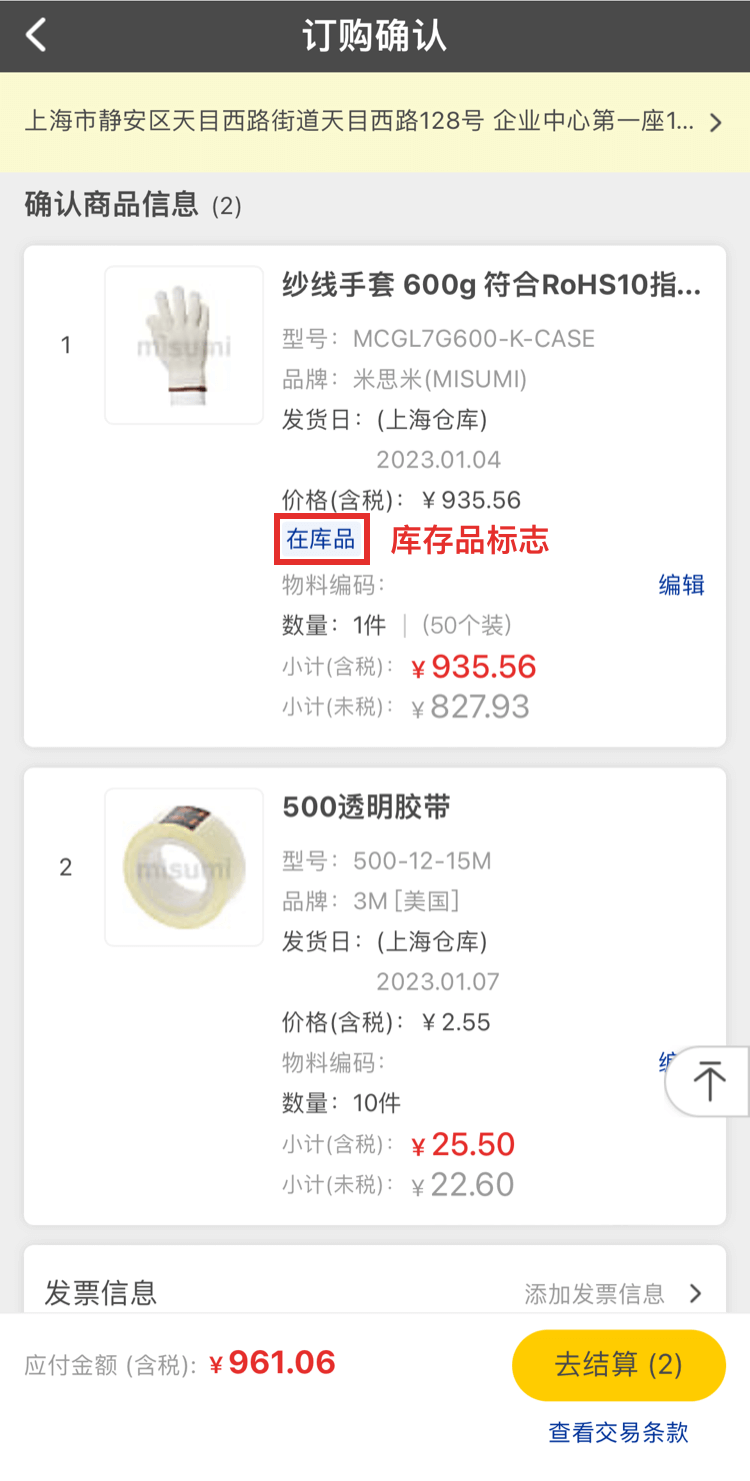 確認需要訂購的商品、數量、價格和交期沒有問題后,點擊【去結算】可完成訂單的下訂。
