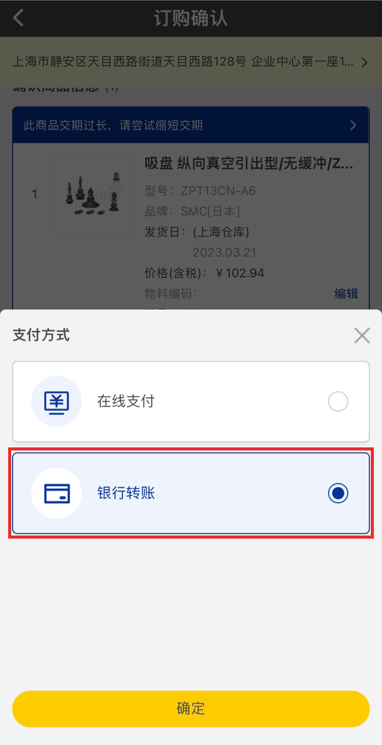 如果您的支付方式為銀行轉賬,在訂購確認頁面選擇銀行轉賬,點擊去結算,在待支付頁面點擊【查看轉賬方式】根據提示轉賬至米思米。