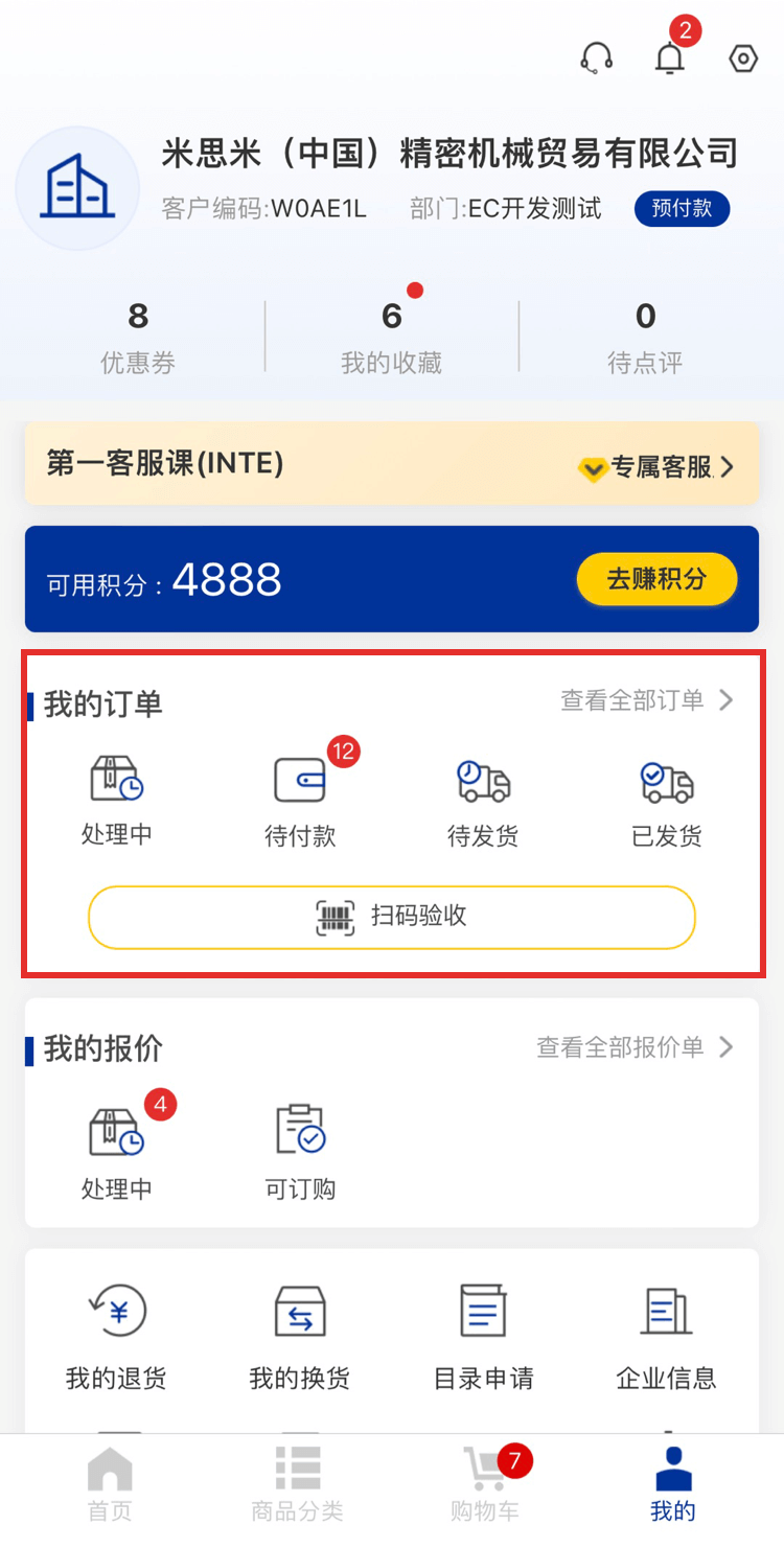 一、在“我的”頁面,可根據不同的訂單狀態(tài)檢索訂單記錄。