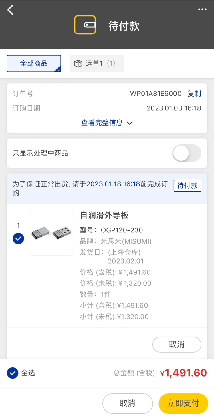 這部分商品,米思米確認后會通過郵件聯(lián)絡,您可以點擊官網首頁頂部點擊【消息】查看詳情。