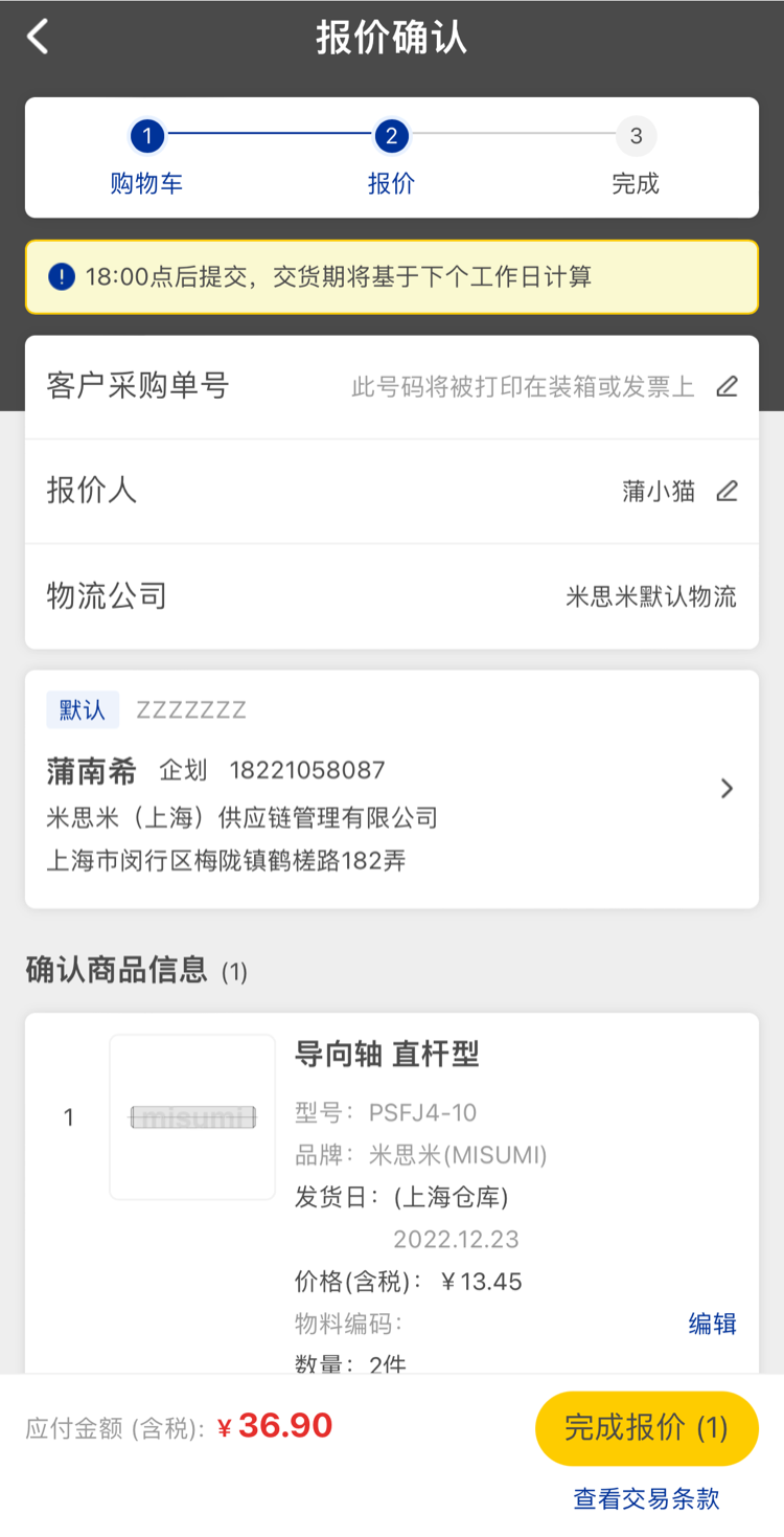 二、確認(rèn)收貨信息,點(diǎn)擊【完成報(bào)價(jià)】,完成此次報(bào)價(jià)。