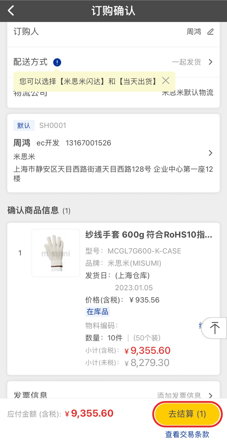 進(jìn)入確認(rèn)訂單頁(yè)面,點(diǎn)擊【結(jié)算】按鈕可直接生成訂單。