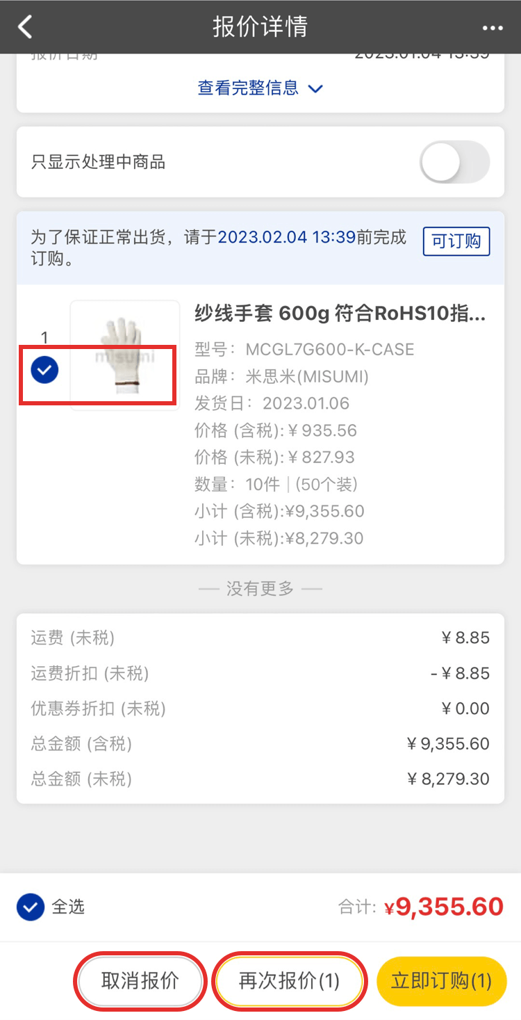 顯示已取得報(bào)價(jià)單的明細(xì)內(nèi)容。