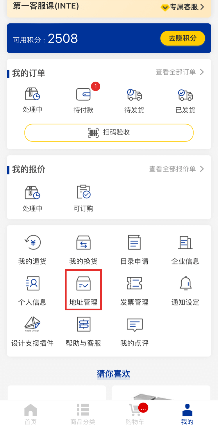 1.在【我的】頁面點擊【地址管理】。