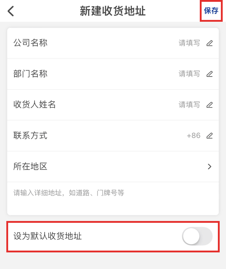 3.填寫信息,按需求選擇是否【設為默認收貨地址】,點擊【保存】。