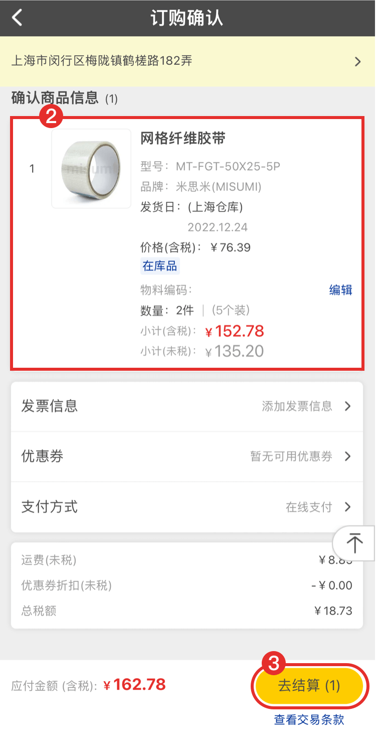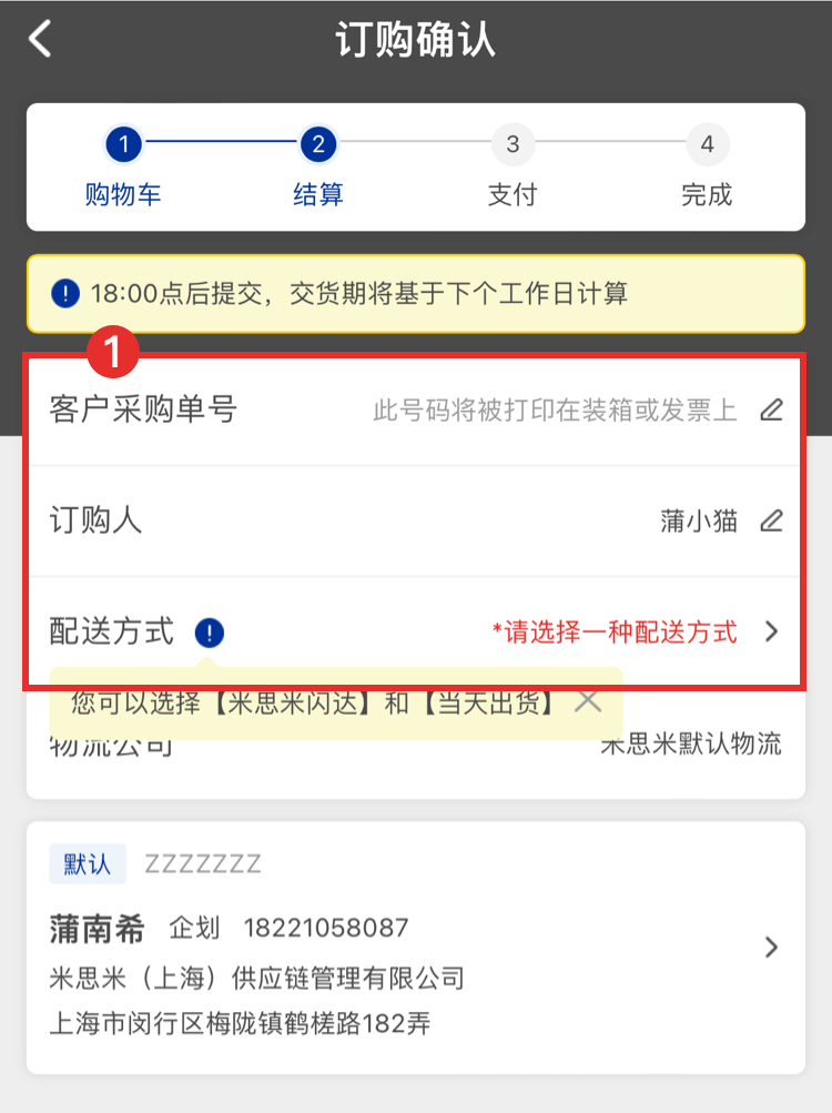 填入相應(yīng)內(nèi)容,點(diǎn)擊【去結(jié)算】去到結(jié)算頁(yè)面。