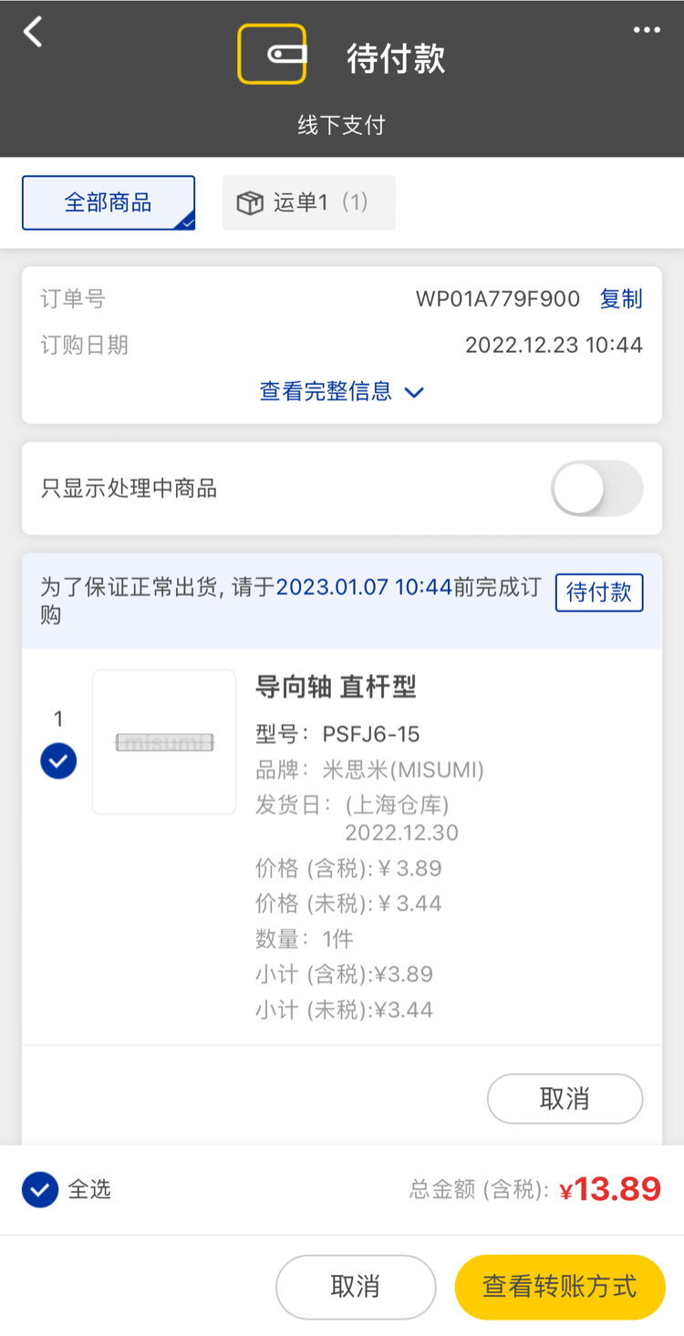 可填寫(xiě)C或W開(kāi)頭的米思米訂單號(hào)。